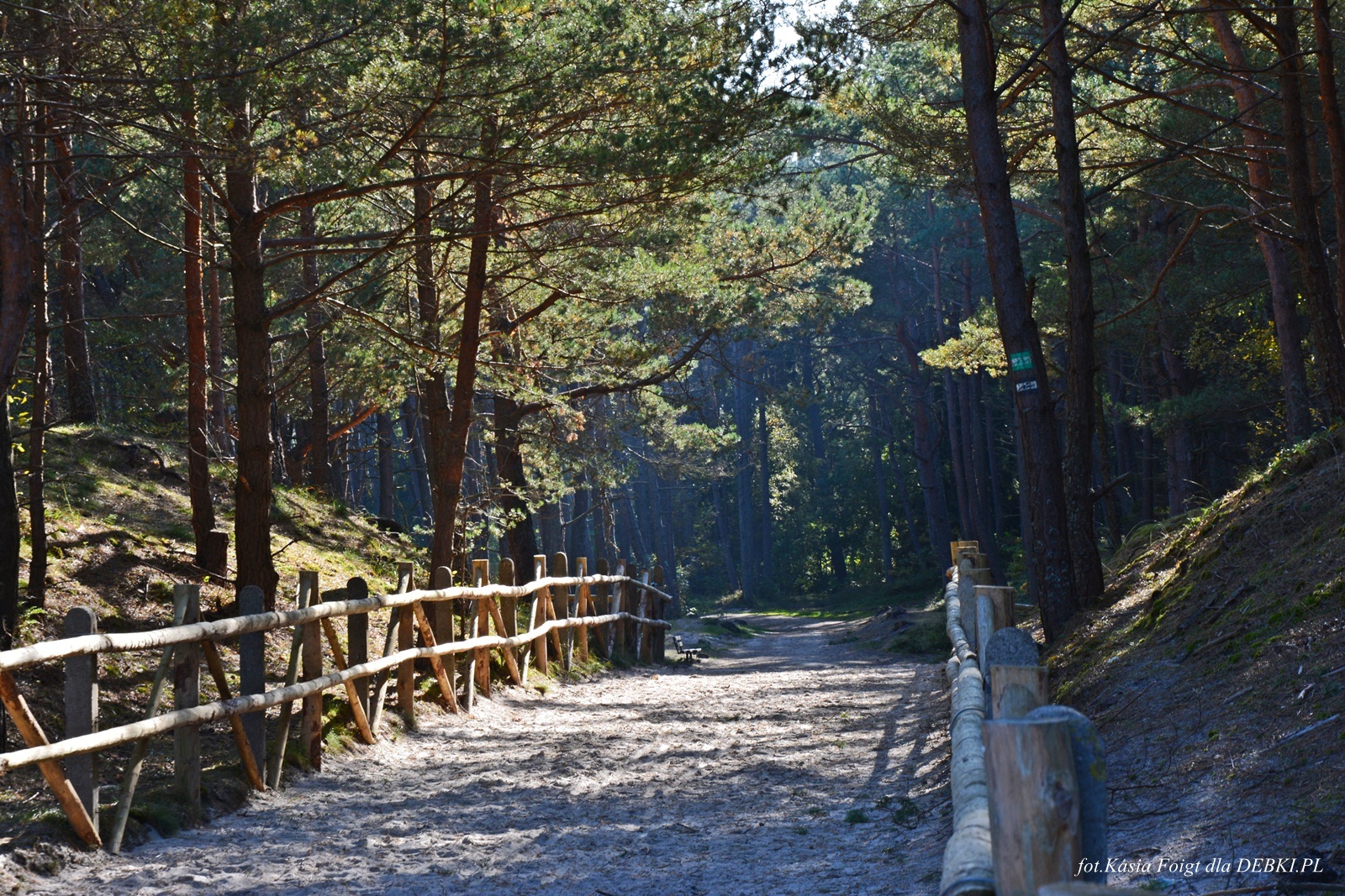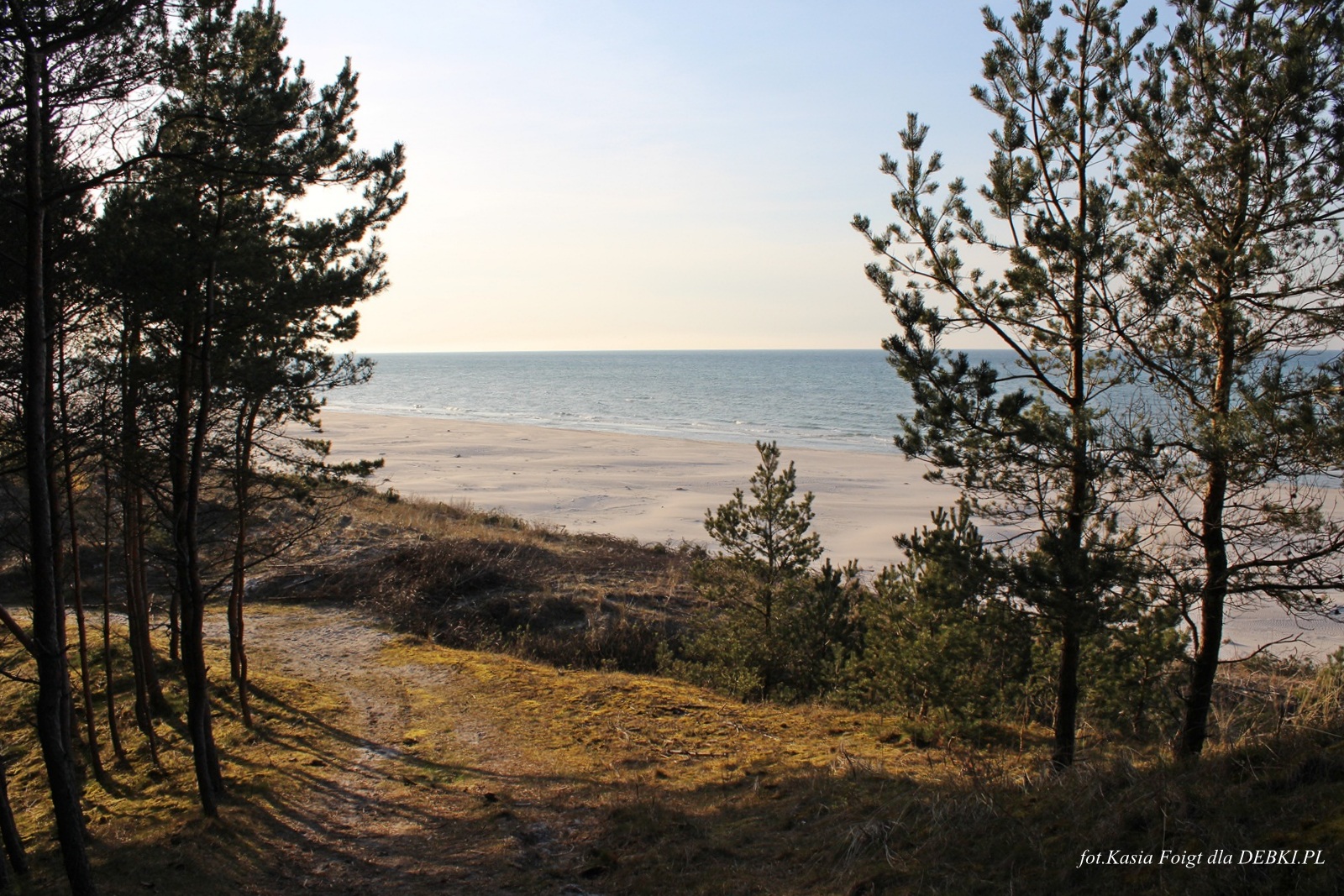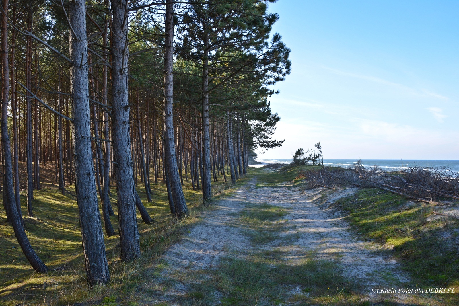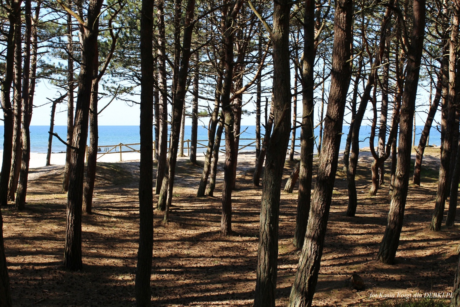 Jedno z piękniejszym wejść na plażę przez sosnowy las.