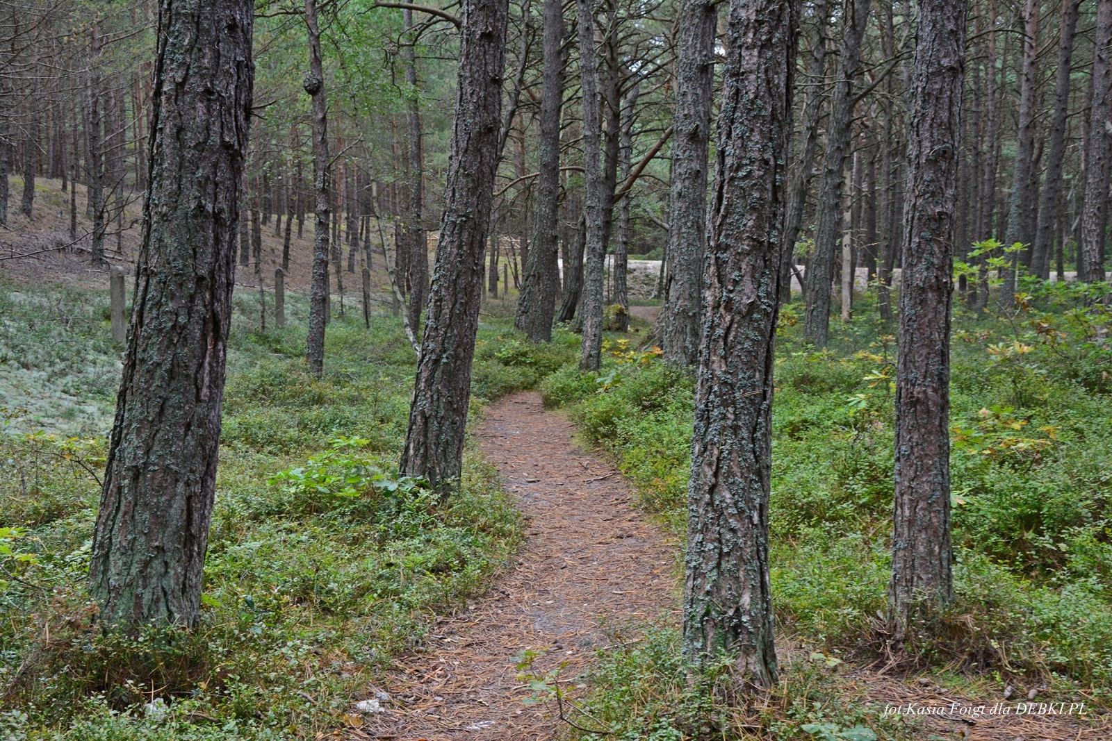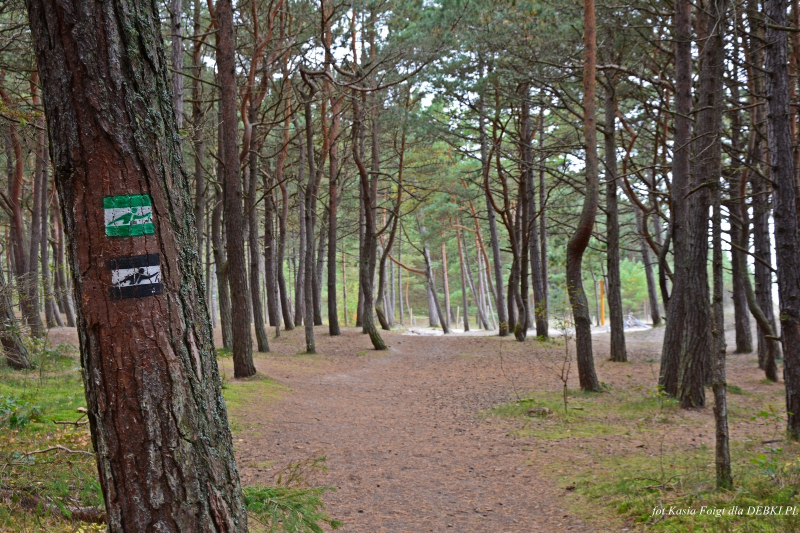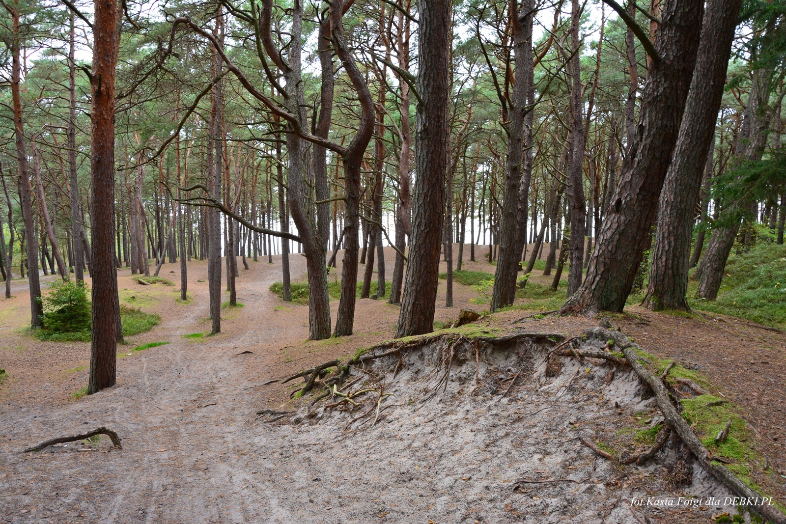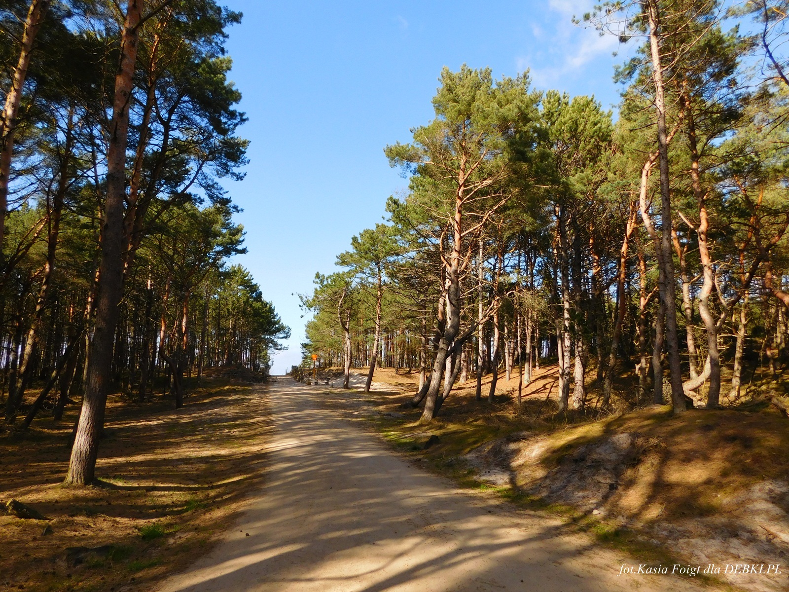 Jedno z piękniejszym wejść na plażę przez sosnowy las.